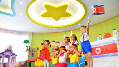 평양육아원의 원아들이 행복의 보금자리에서 세상에 부럼없이 무럭무럭 자라나고있다.